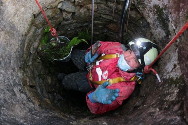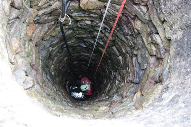 U bunar se spušta odjeven u posebno odijelo i sa zaštitnom kacigom na glavi, a ručna svjetiljka pomaže mu da bolje vidi stanje bunara iz unutra.